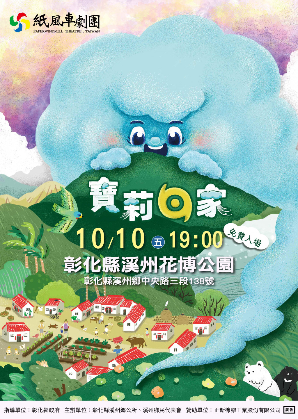 說明: 一、播放時間:自即日起至114年10月10日止。 二、播放內容:10月10日(星期五)晚上7點於溪州鄉溪州公園, 演出「紙風車兒童劇團」《寶莉回家》,免票入場,歡迎 闔家觀賞。 三、檢附紙風車兒童劇團《寶莉回家》文宣電子檔1份(如附 件)。